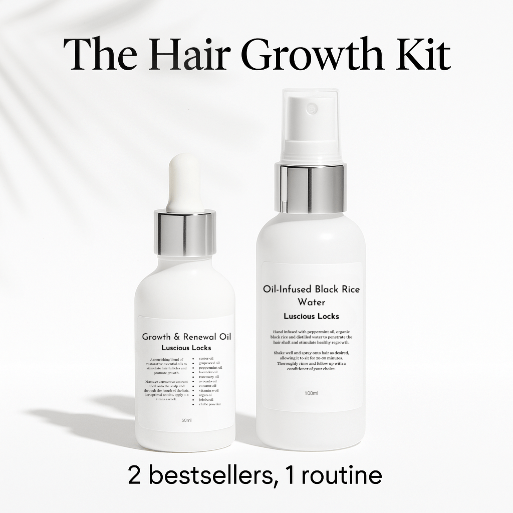 Transform your hair from root to tip with the Luscious Locks Hair Growth Kit. A powerhouse duo designed to stimulate growth, strengthen strands, and restore shine and vitality.